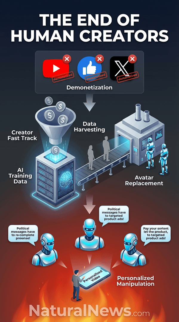 The recent wave of mass demonetizations sweeping across YouTube and X isn’t random. It isn’t about enforcing quality standards or protecting advertisers. It’s a deliberate strategy to clear the playing field for what comes next: a post-human content creation system powered entirely by artificial intelligence. I have watched this unfold for years, and the pattern is unmistakable. Platforms are systematically devaluing human creators to make room for AI avatars that never demand payment, never take sick days, and never push back against censorship.