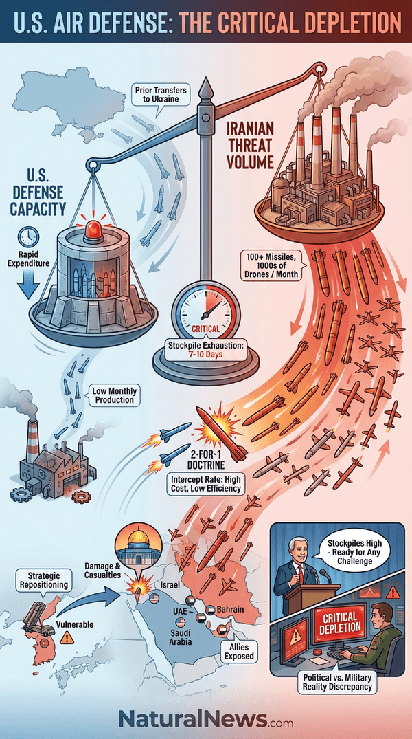 For one-way attack drones, the asymmetry is even more pronounced. Intelligence estimates suggest Iran can manufacture thousands of such drones monthly, while U.S. production lines for similar systems are only recently being rolled out. [9] The consumption rate in active defense is severe. Unofficial projections circulating among military planners indicate that current U.S. and allied stockpiles of key interceptor missiles could be exhausted within 7 to 10 days if the current intensity of Iranian attacks continues. [10]